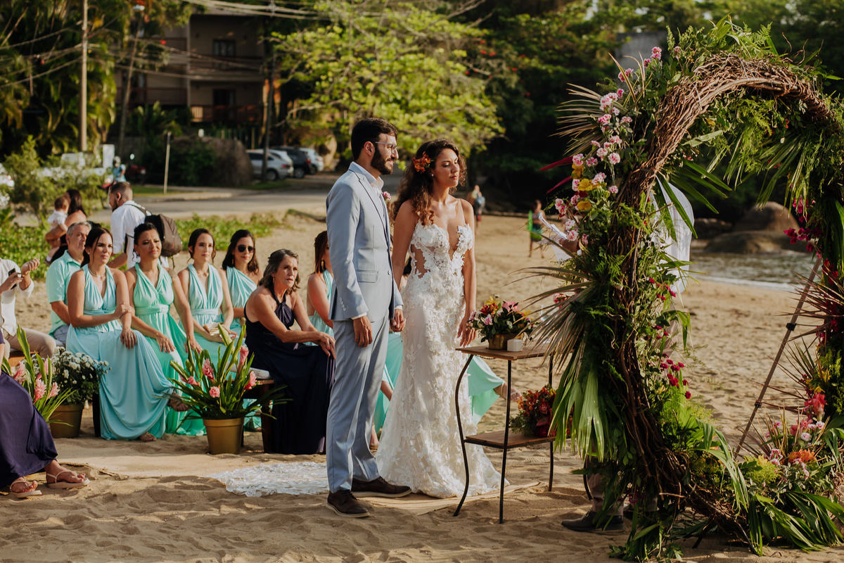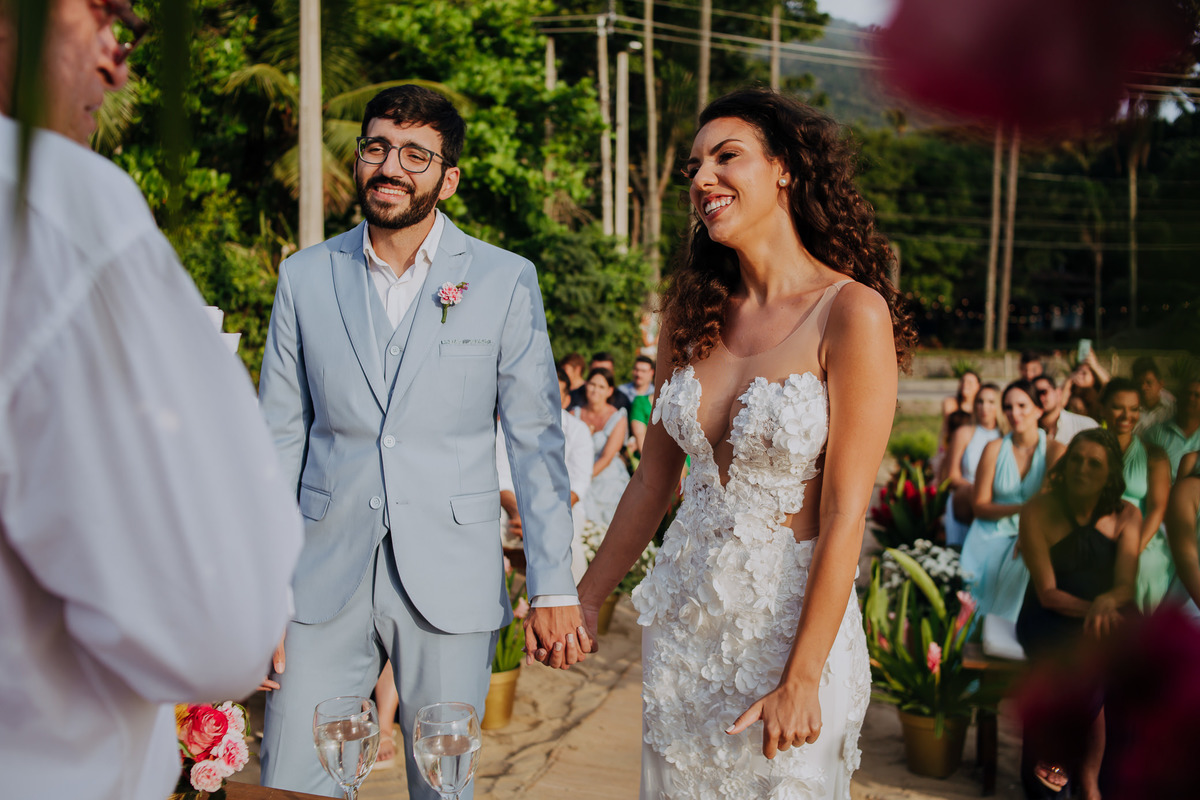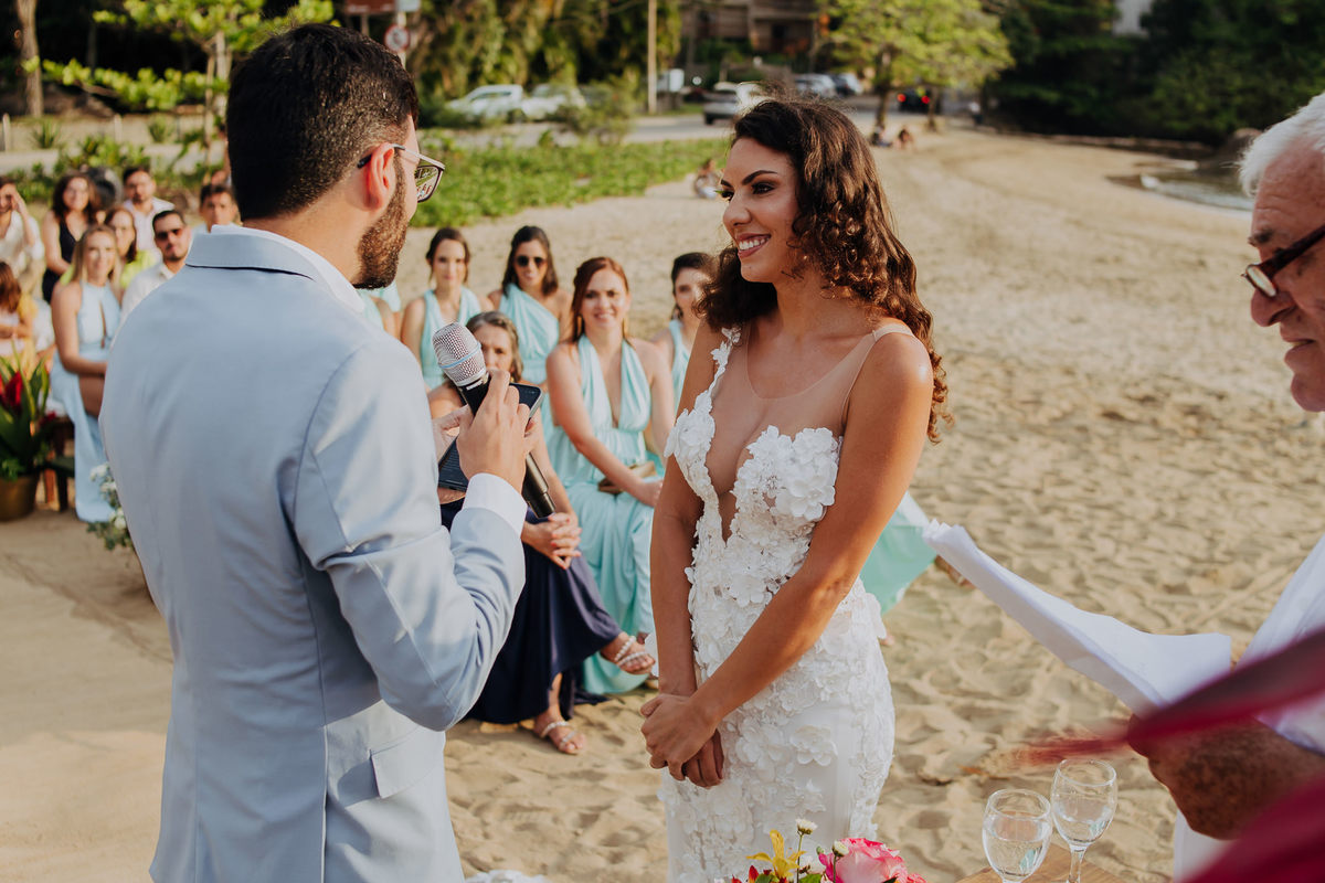 Simplesmente não dá pra explicar o quão surreal foi viver essa experiência do casamento na praia da Anna e do Yuri. Um casamento em Ilhabela, ao ar livre, pé na areia e com recepção mais que especial na Vila Siriúba.