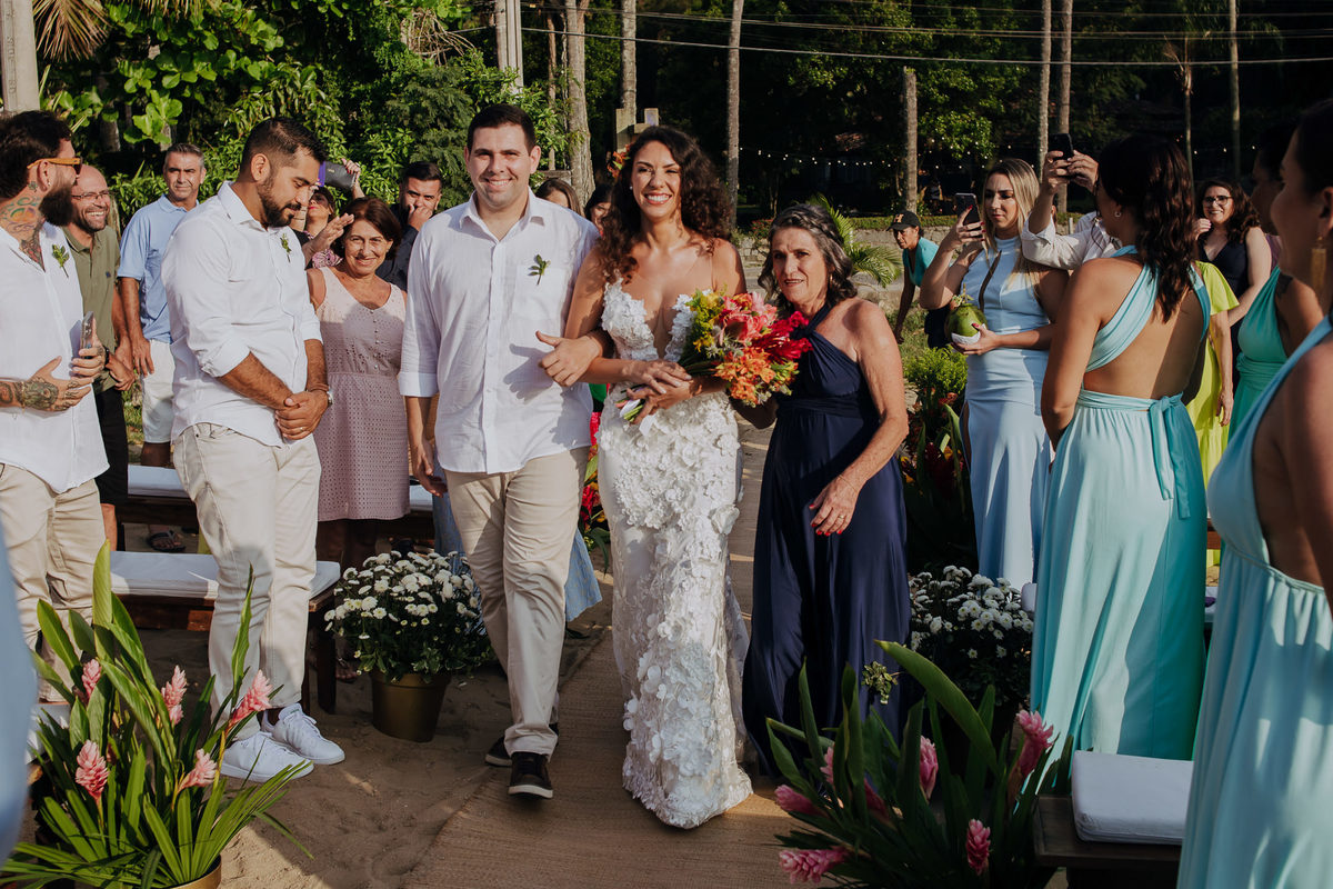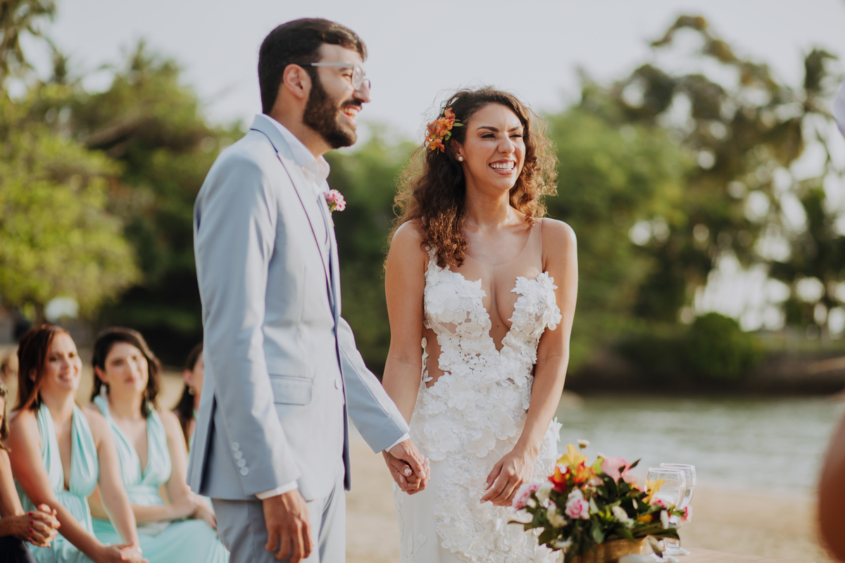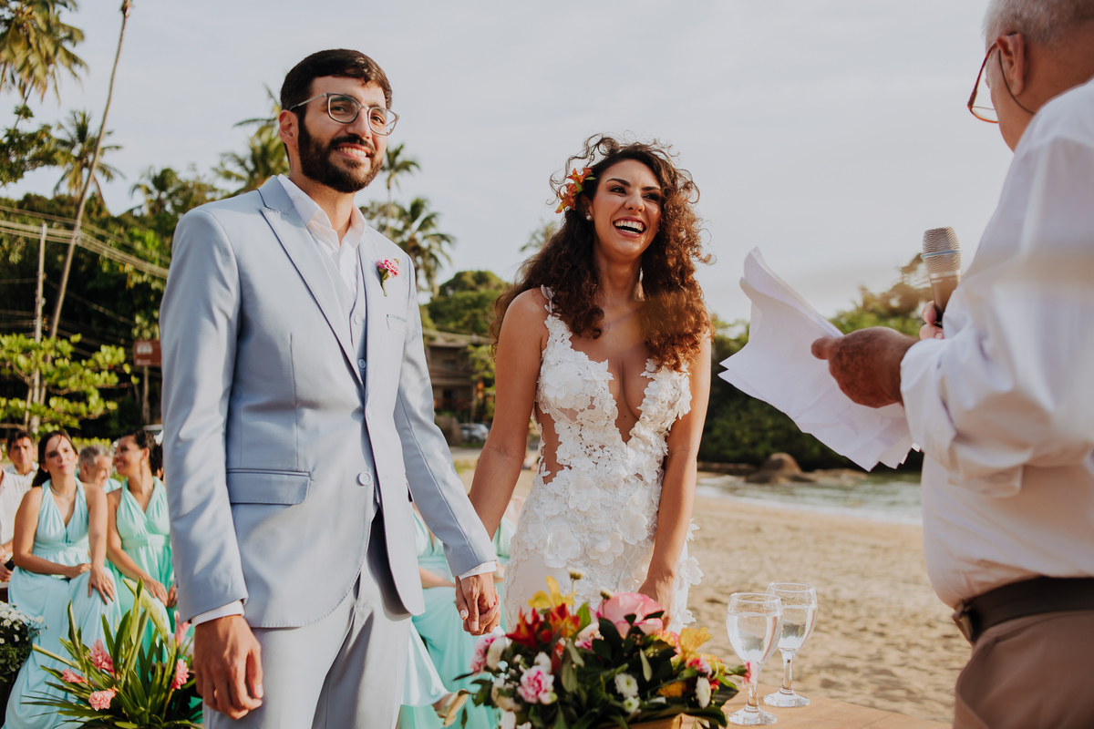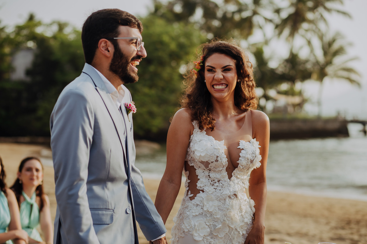 Simplesmente não dá pra explicar o quão surreal foi viver essa experiência do casamento na praia da Anna e do Yuri. Um casamento em Ilhabela, ao ar livre, pé na areia e com recepção mais que especial na Vila Siriúba.