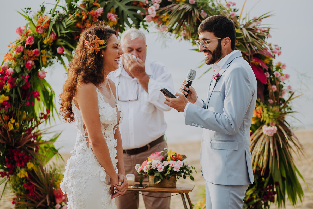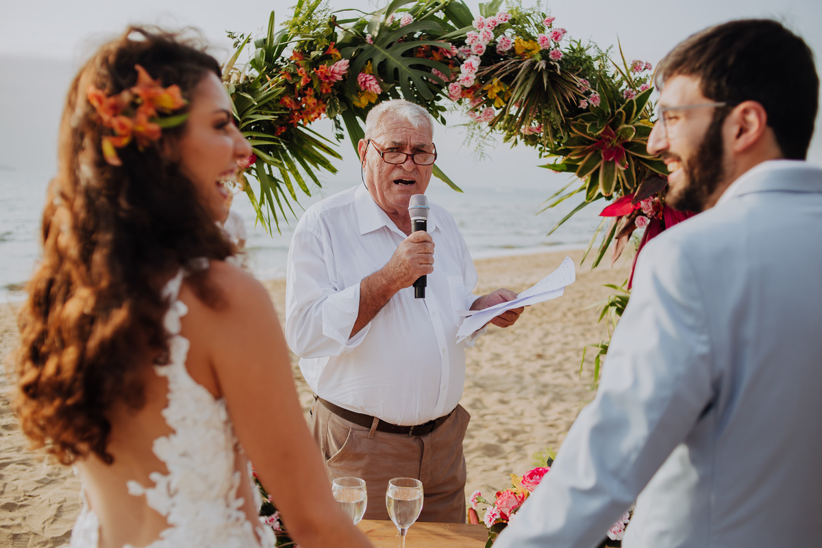 Sério… Os dois, naquele solzão da praia, pareciam ter saído de um filme, e claro, com uma pitada de Stand Up Comedy, com o Tio da Anna como celebrante, sendo uma das cerimônias de casamento mais, engraçadas e pessoais que tivemos a honra de fotografar, hahaha.